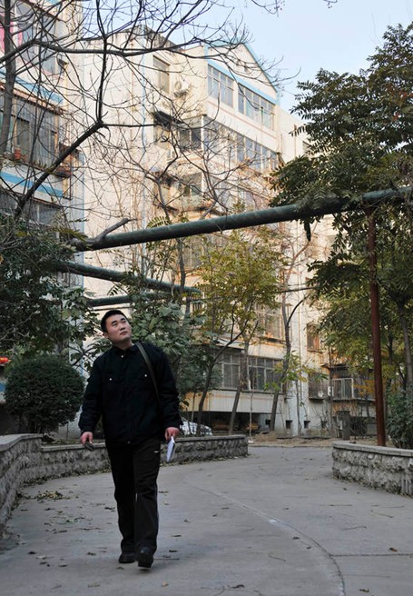 來到11號樓,胡站長并沒有直接進(jìn)入用戶家,他首先爬上二樓單元屋檐上,檢查了一下進(jìn)、出單元的壓力表,一切正常后,才來到4樓王大娘家。